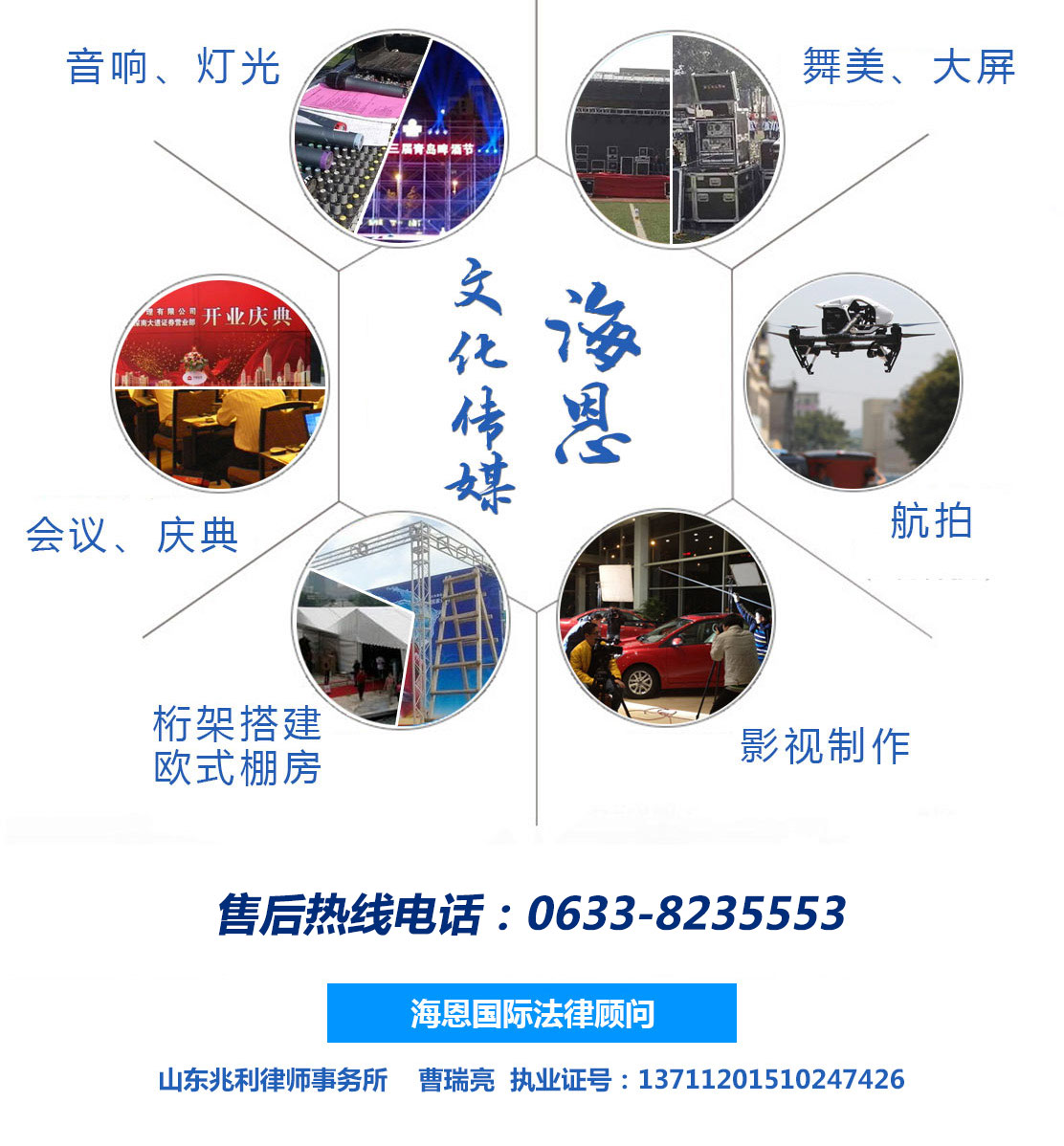 日照海恩國際展覽股份有限公司主要經(jīng)營:為文化藝術(shù)交流提供服務(wù),攝影攝像服務(wù),廣告圖文設(shè)計,舞臺設(shè)計,文化藝術(shù)交流策劃,舞臺藝術(shù)造型策劃,企業(yè)營銷策劃,商務(wù)信息咨詢,會議服務(wù),展覽展示服務(wù),禮儀慶典服務(wù),廣告設(shè)計制作等產(chǎn)品。公司尊崇“踏實、拼搏、責任”的企業(yè)精神,并以誠信、共贏、經(jīng)營理念,創(chuàng)造良好的企業(yè)環(huán)境,以全新的管理模式,完善的技術(shù),周到的服務(wù),我們始終堅...